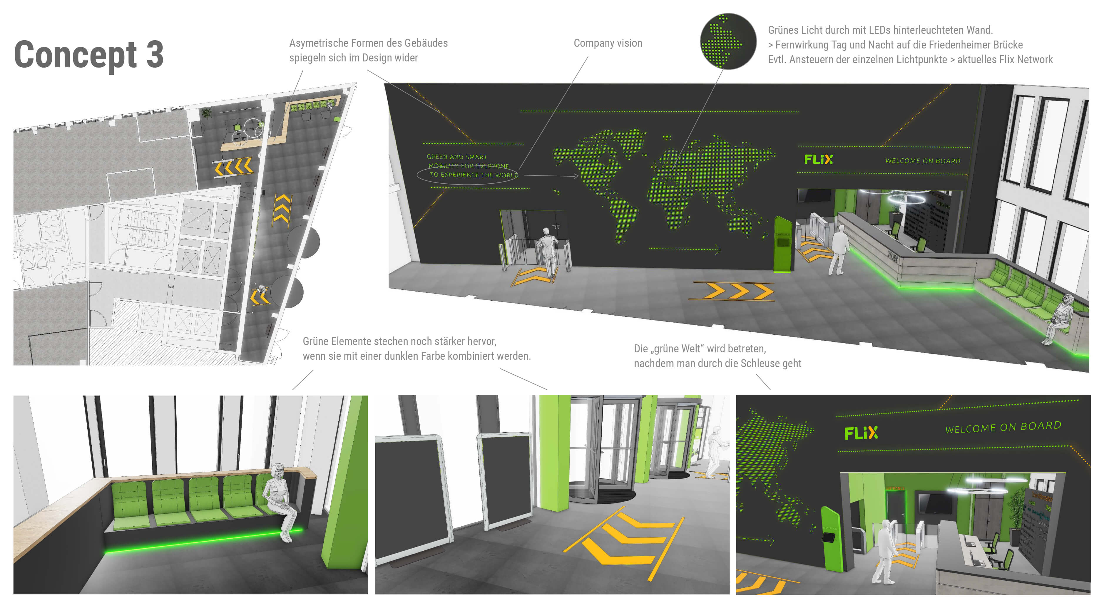 In 2020 the Flix headquarter in Munich moved to a new buiIding which is known as Kap West. I was chosen as a lead designer to direct the visual branding and cooperate with interior designers. Some parts weren't implemented due to budget cuts while the corona pandemic.