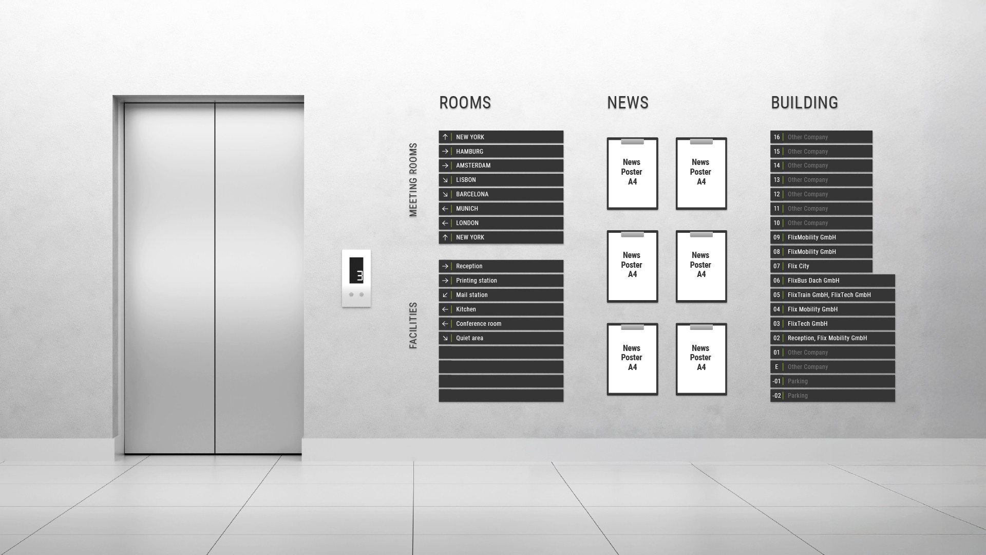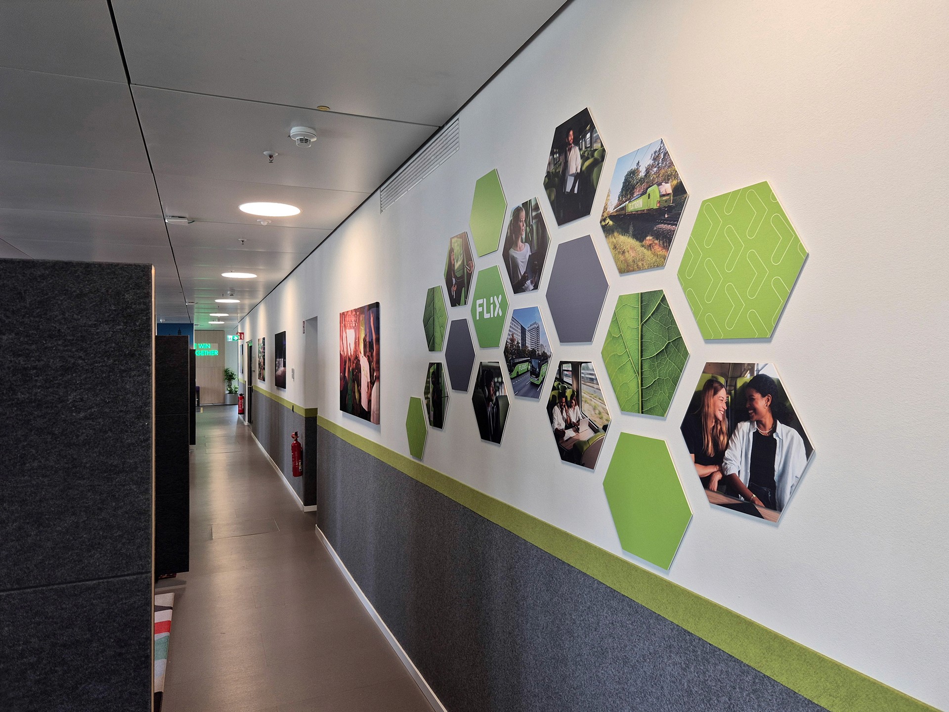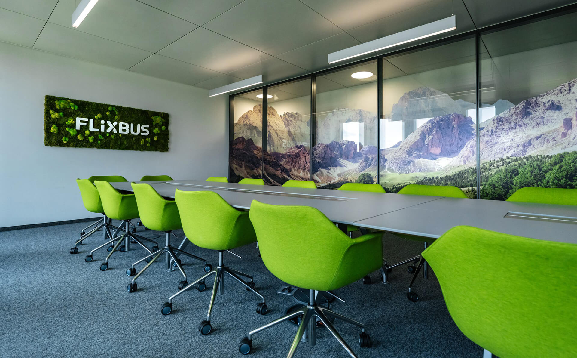 Flix is a global company with many offices around the world. Its headquarters are in Munich and have changed location within the city several times. The branding of the main location has always served as a role model, from which the design for the international locations is derived. As the offices have grown in size, the complexity of the visual and signage requirements has also increased.