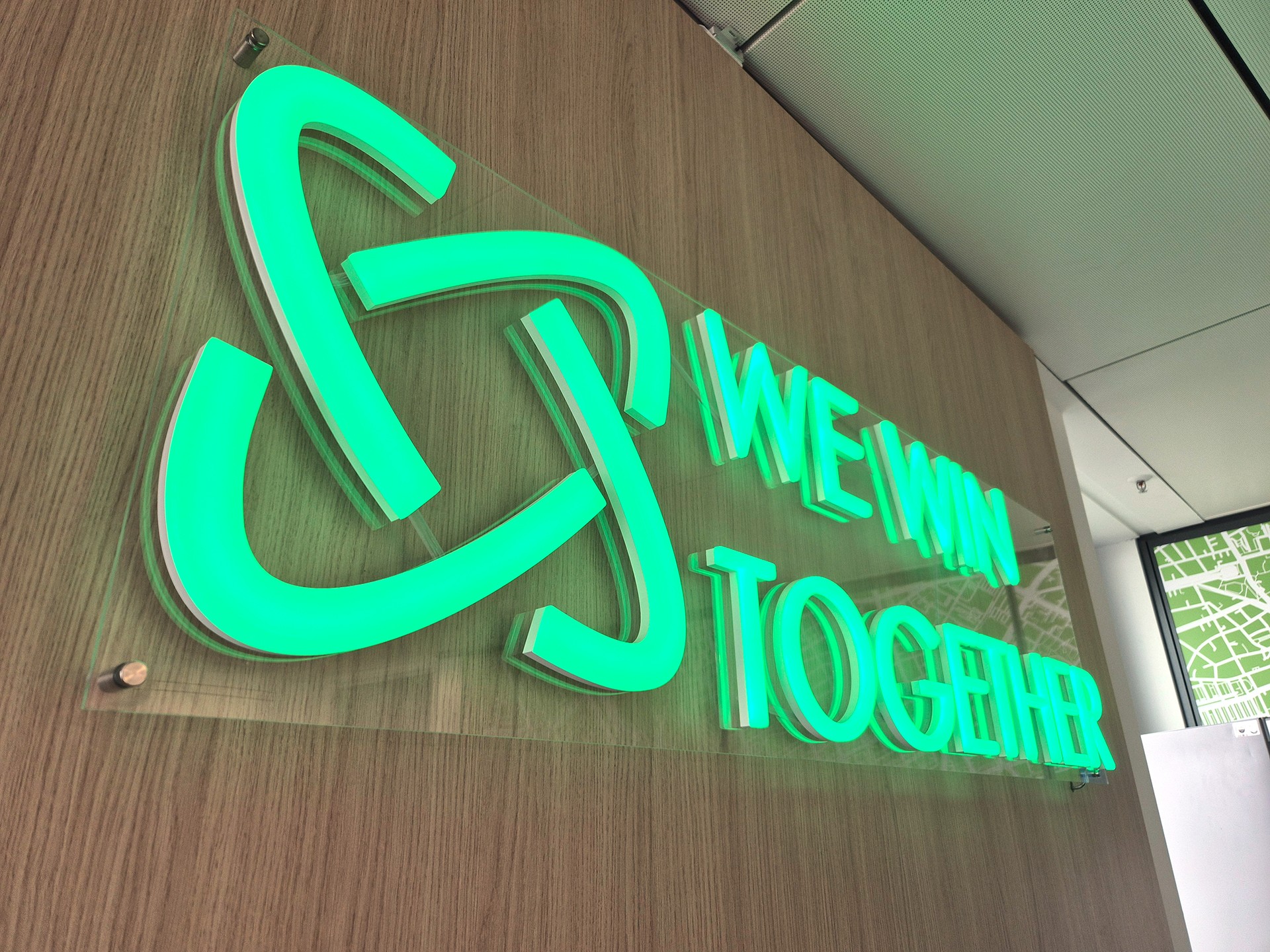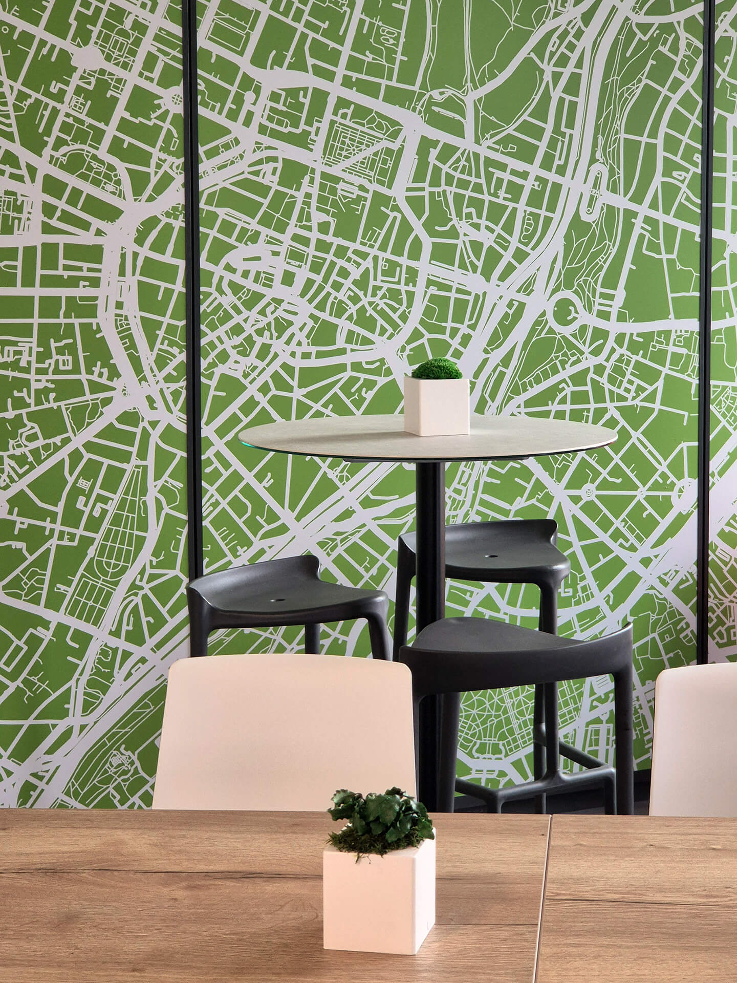 From the very first office, I contributed my input on the in-house branding and implemented the design of the office walls. Later, I also collaborated with an cross-functional workshop group and with external interior designers. This included concepts for a uniform branding, technical implementation and wayfinding systems to help employees find their way around the building easily.